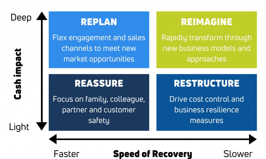 * The depth of financial impact and expected time to recover from Covid-19 will define if your organisation needs to re-imagine, re-plan, re-structure or reassure.